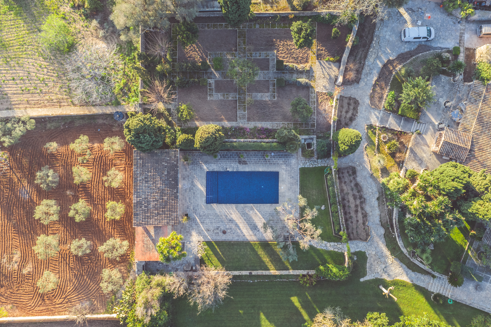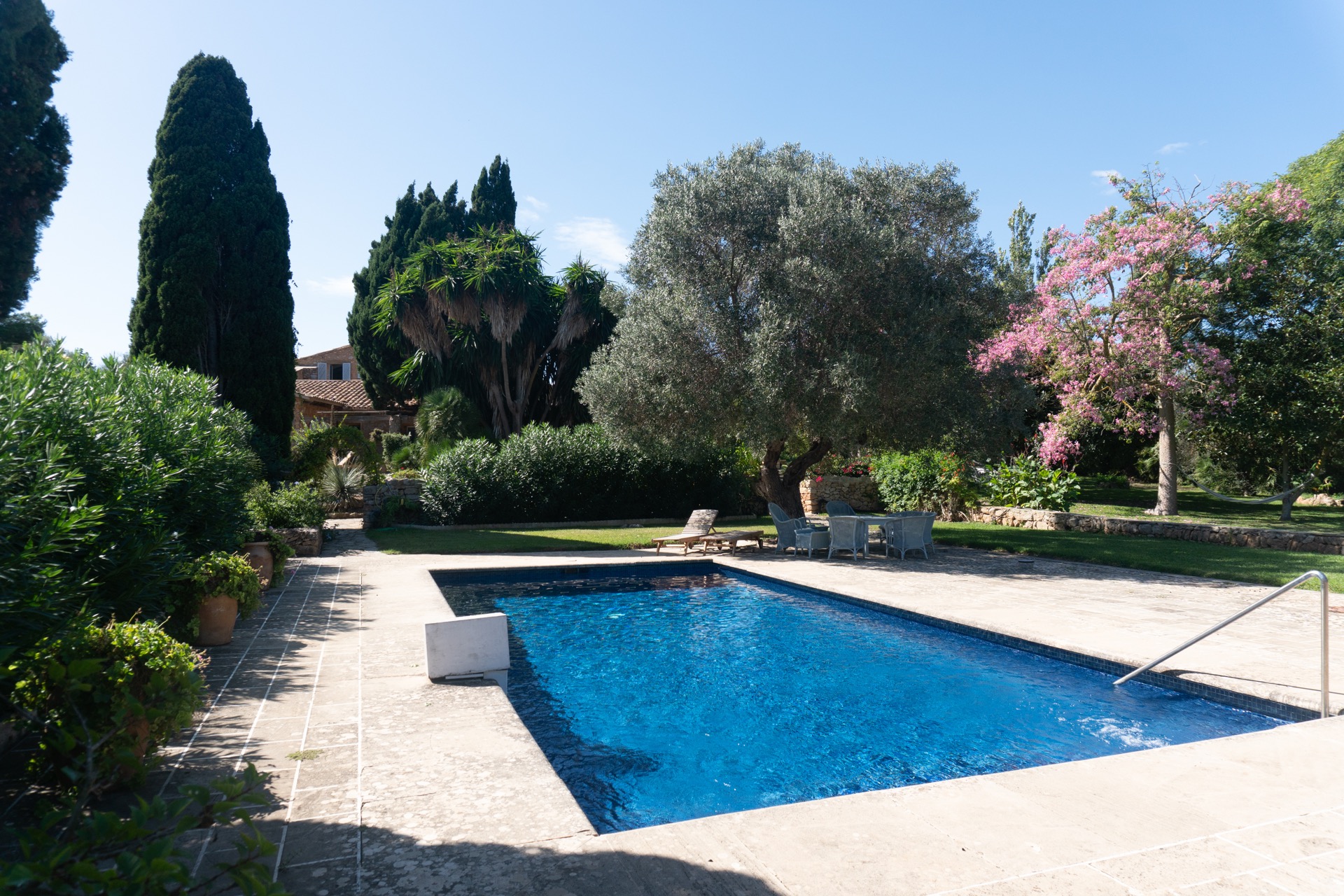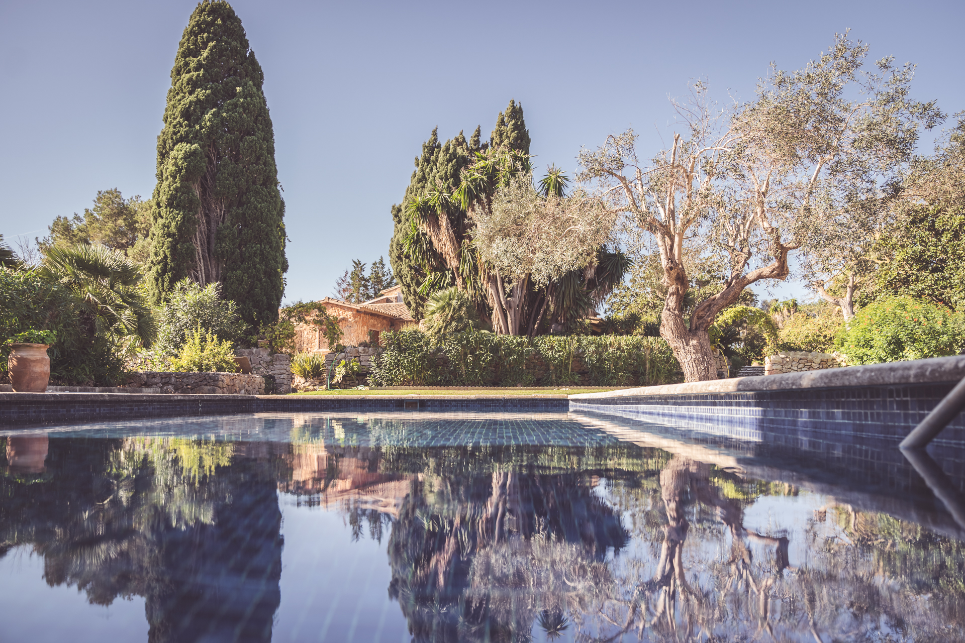 Knapp 11.000 Quadratmeter Garten verteilen sich rund um die Gebäude. Am Rand des Grundstücks der Pool, der den ganzen Tag in der Sonne liegt.
